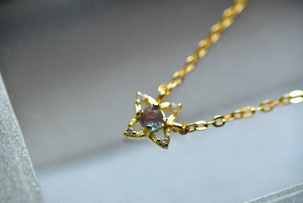 ワンピースやブラウスのかわいめコーディネートにぴったりな星のネックレス。
