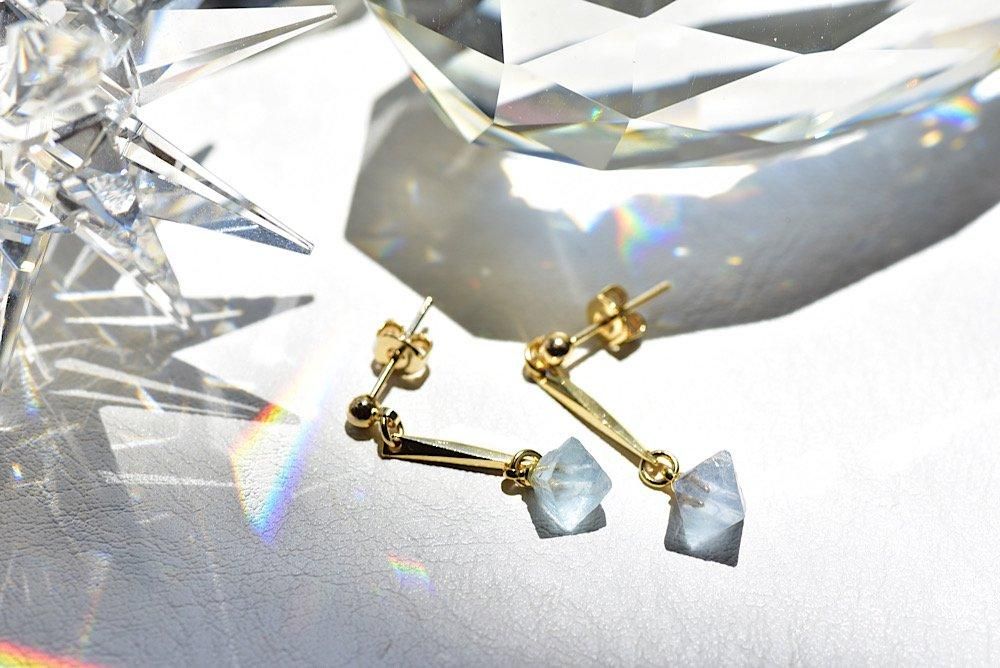 1cmに満たない小さな八面体が耳たぶの下でころころと揺れる様子はとてもかわいく、思わずなんども鏡を見たくなってしまうはず。
