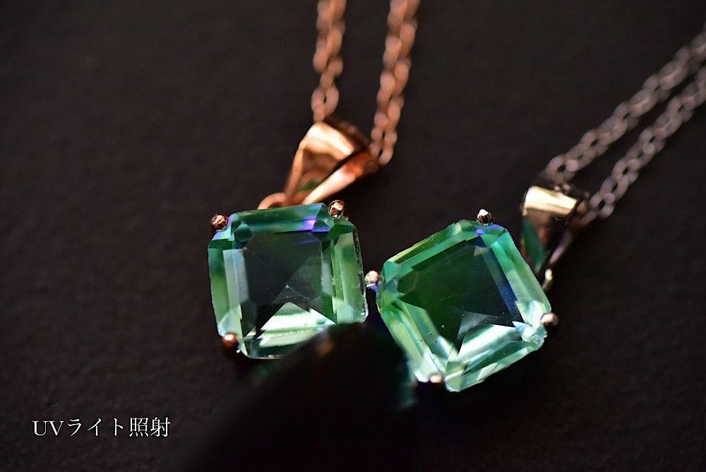 着色剤としてごくわずかな量のウランをガラスに加えたもので、蛍光させることを狙っての生まれではありませんでした。UVライトでネオングリーンに蛍光するグリーンのガラスが多く、次いでイエローが多く存在しています。その他ブルーやピンク他、希少な色もあります。昔から現在においても、食器などにも使用されいるので着用に不安はありません。