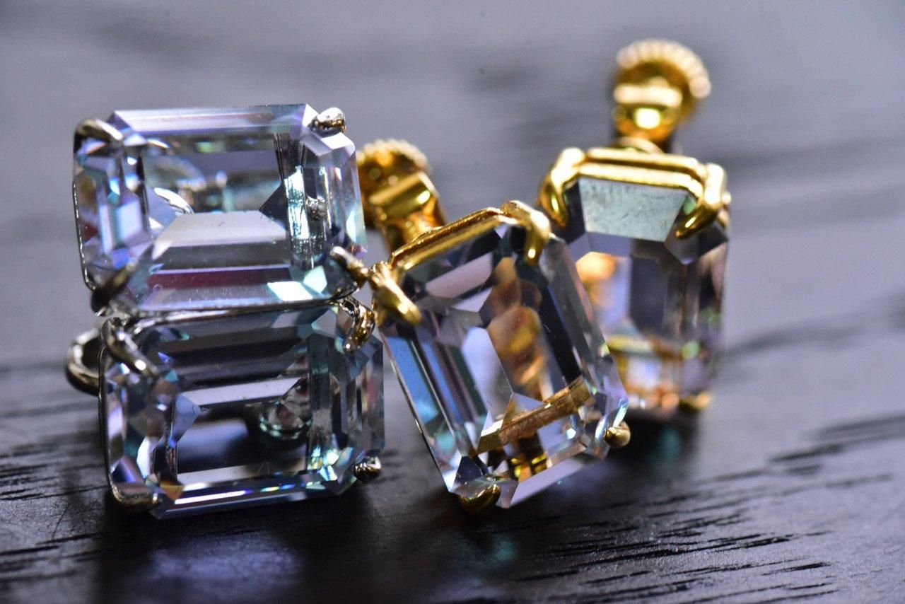 レクタングル:アレキサンドライトスワロフスキー|耳飾り