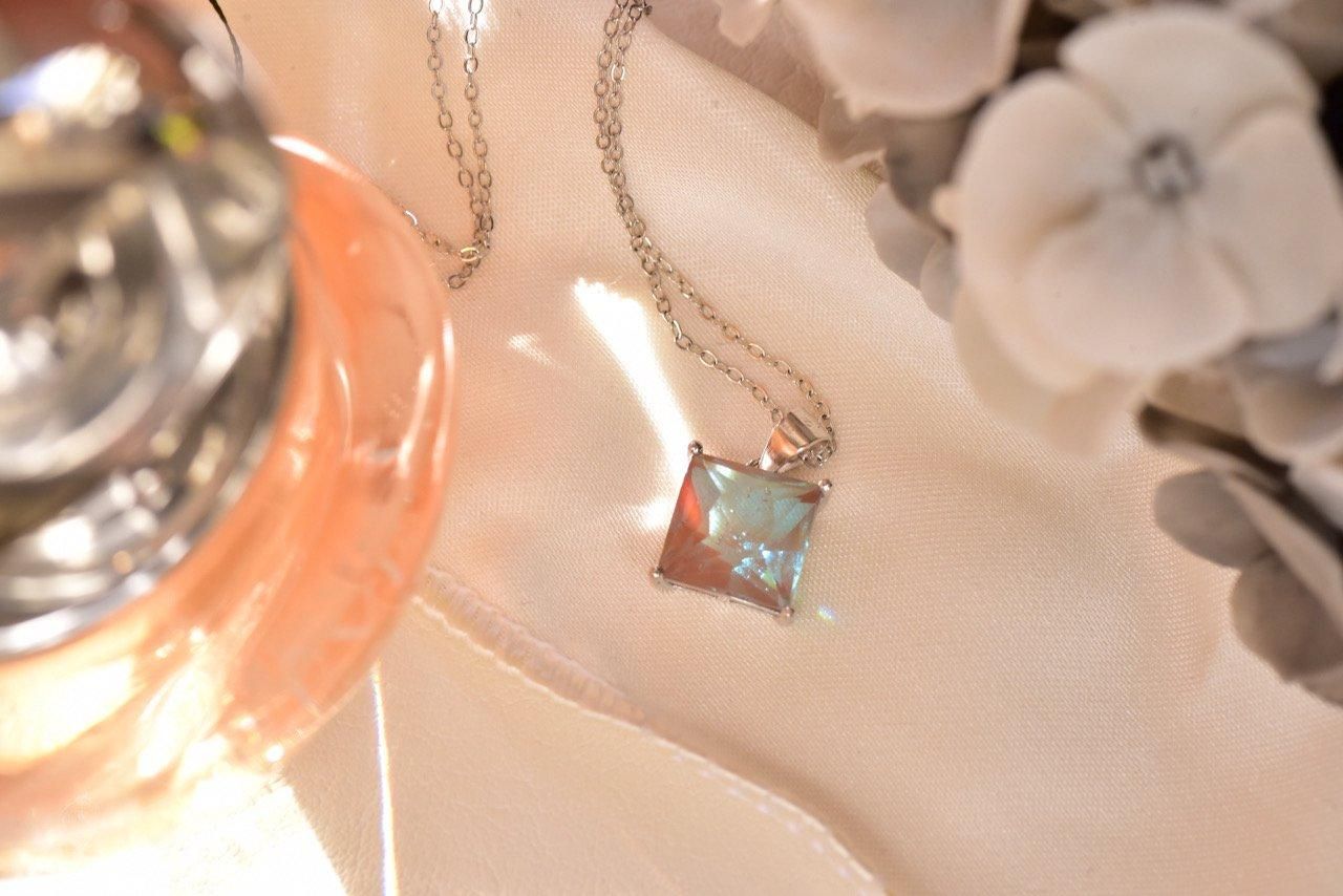※サイズ:チェーン…およそ=40cm/サフィレット…スクエアカット対角およそ13mm
