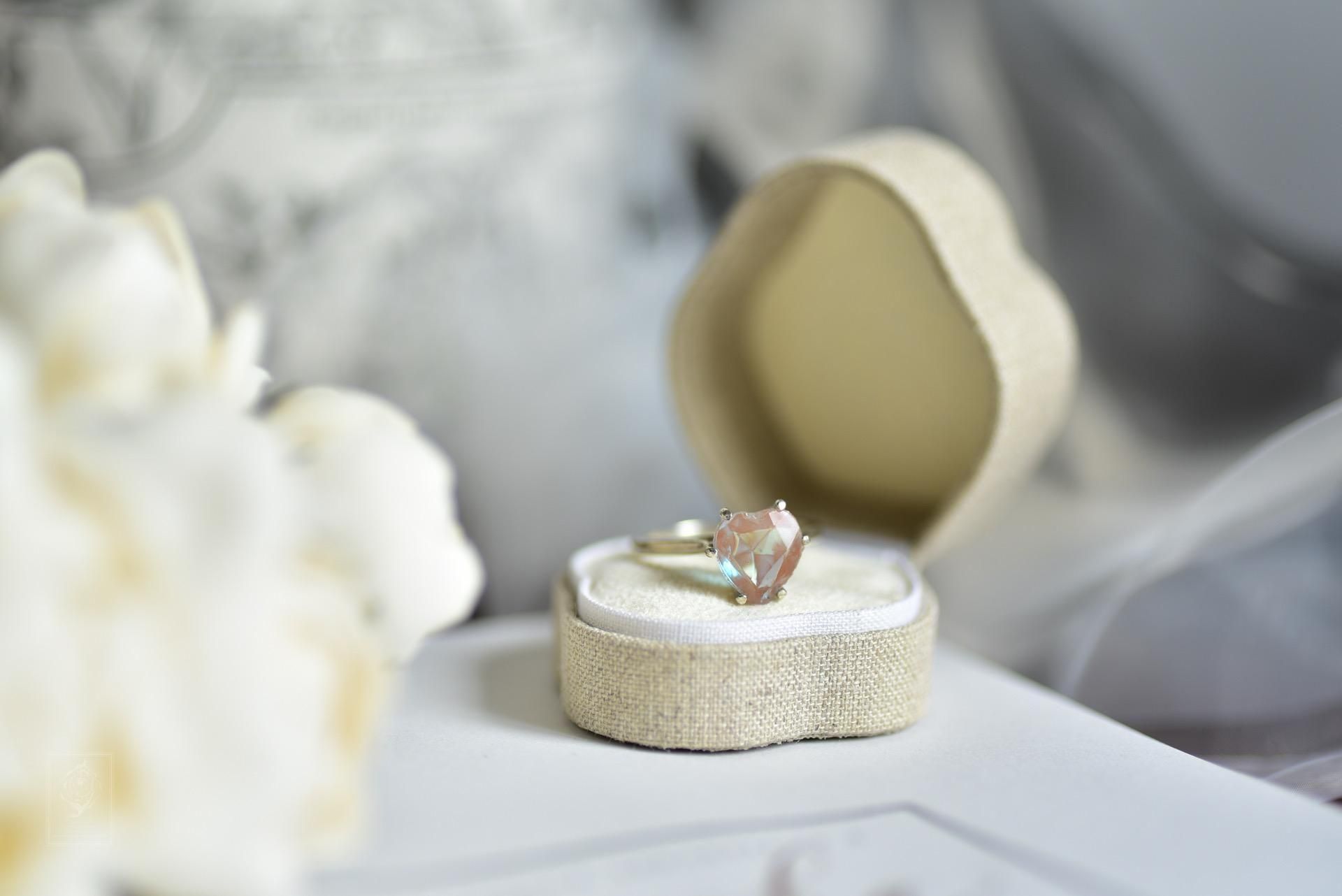 使用したのは、壊れたブローチのから外した非常に希少なハート型のアンティークサフィレット。