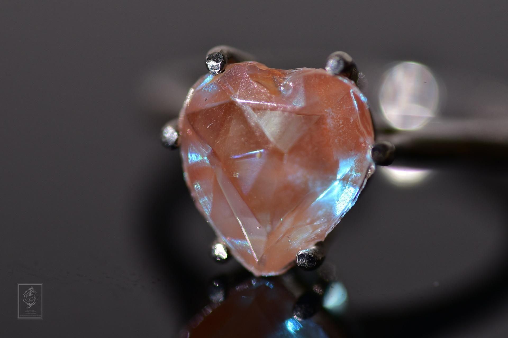 三角が整然と並ぶローズカットで、クラシックな縦長のハートが大人の女性の心を打つルースです。