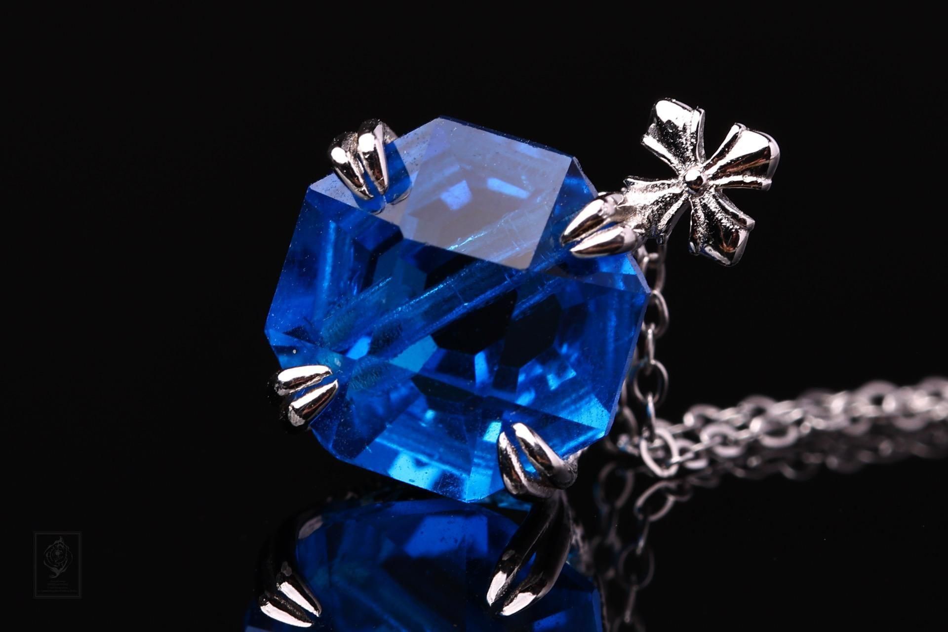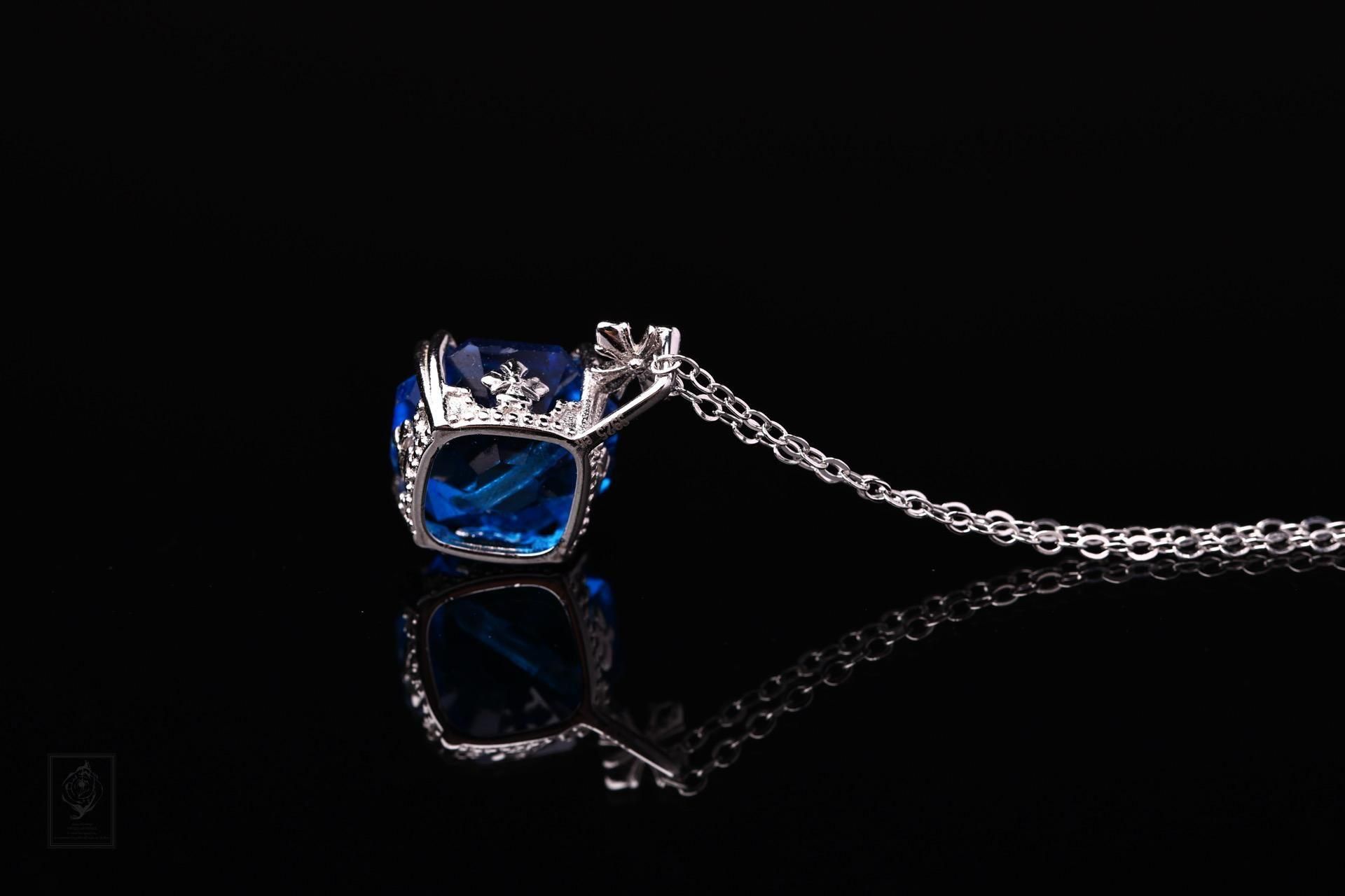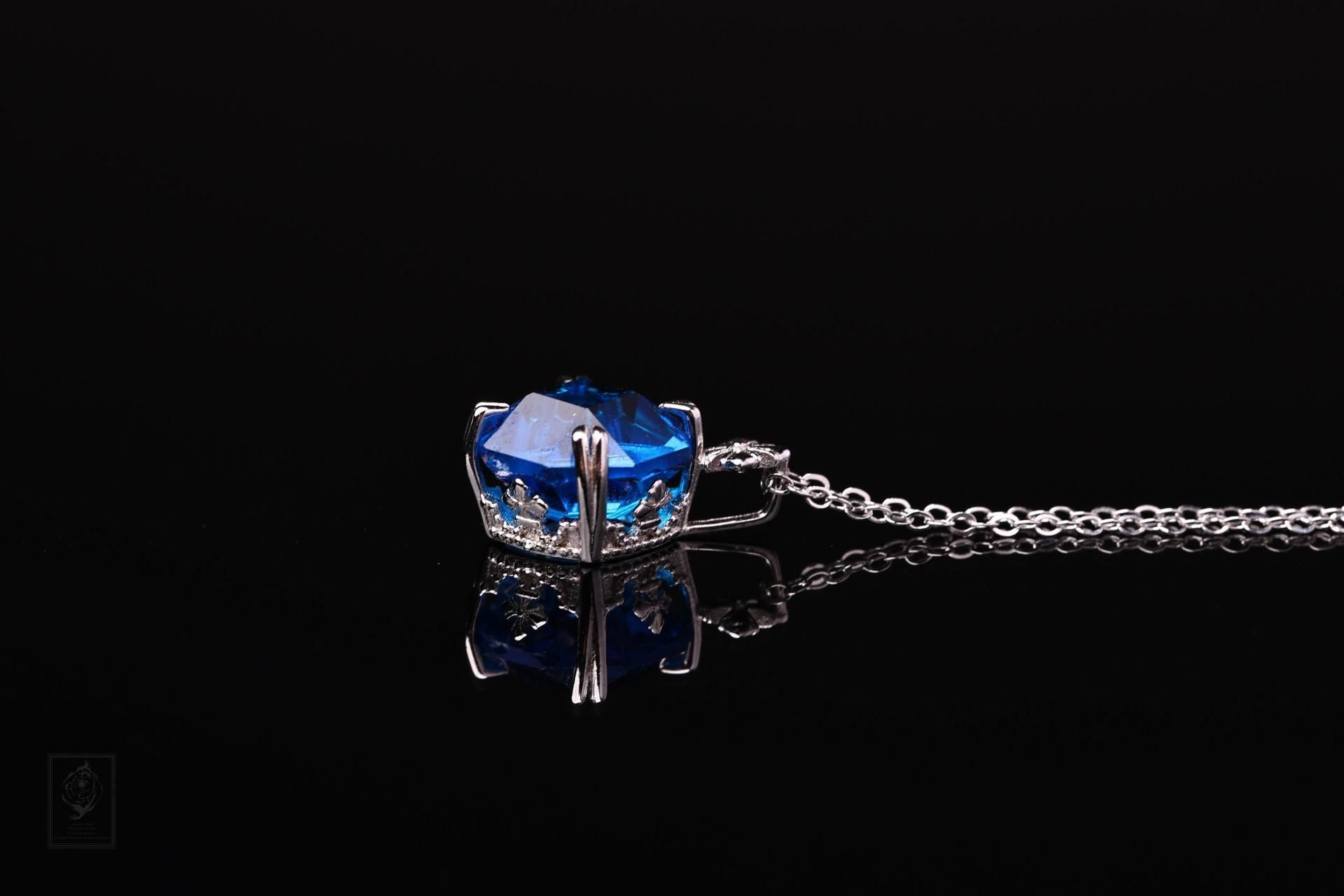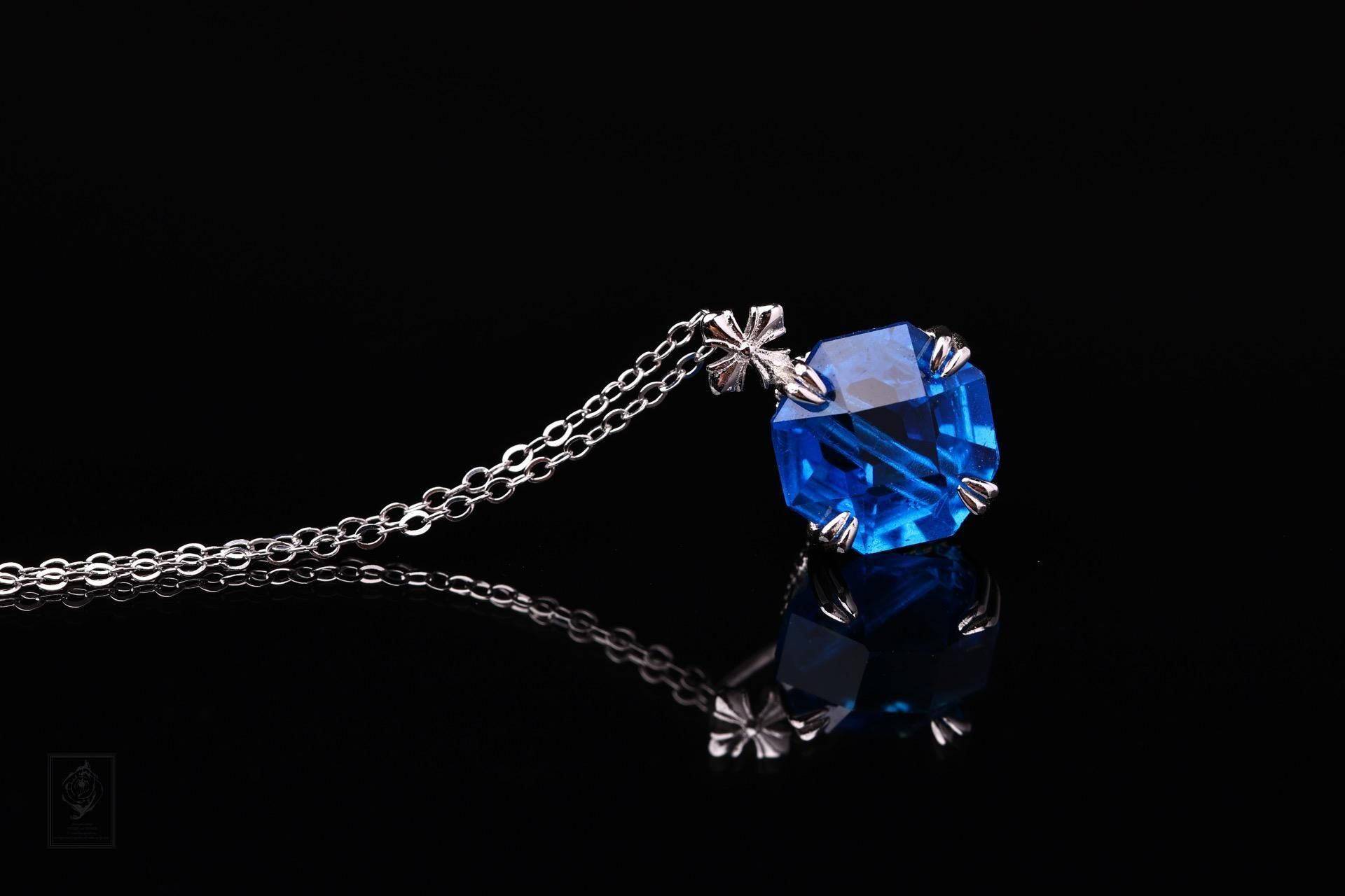 深い海を思わせるブルーは、光によって濃淡を変え、首元に静かな存在感を添えます。
