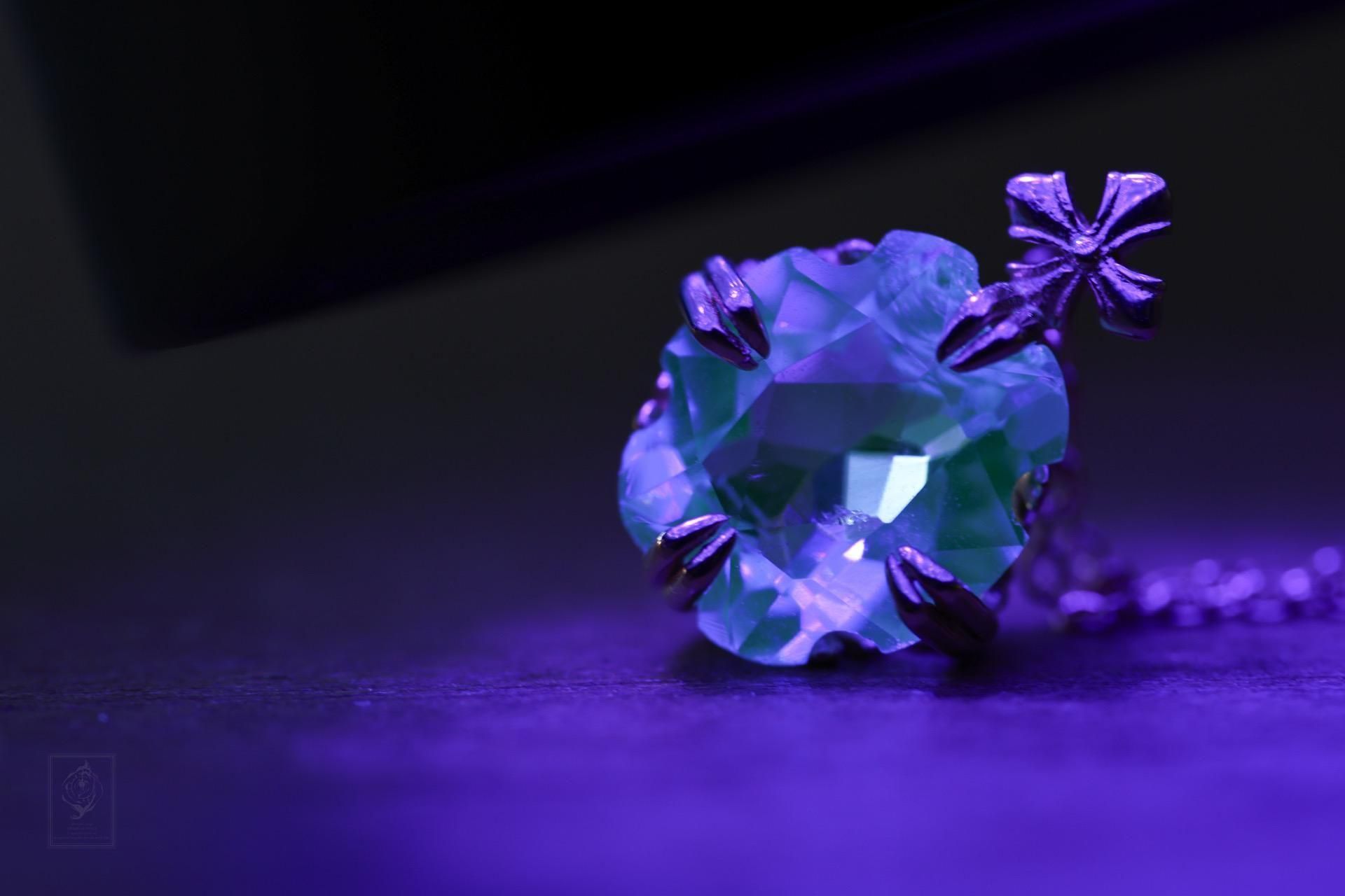 UVライトを当てるとネオンライトブルーに蛍光します。