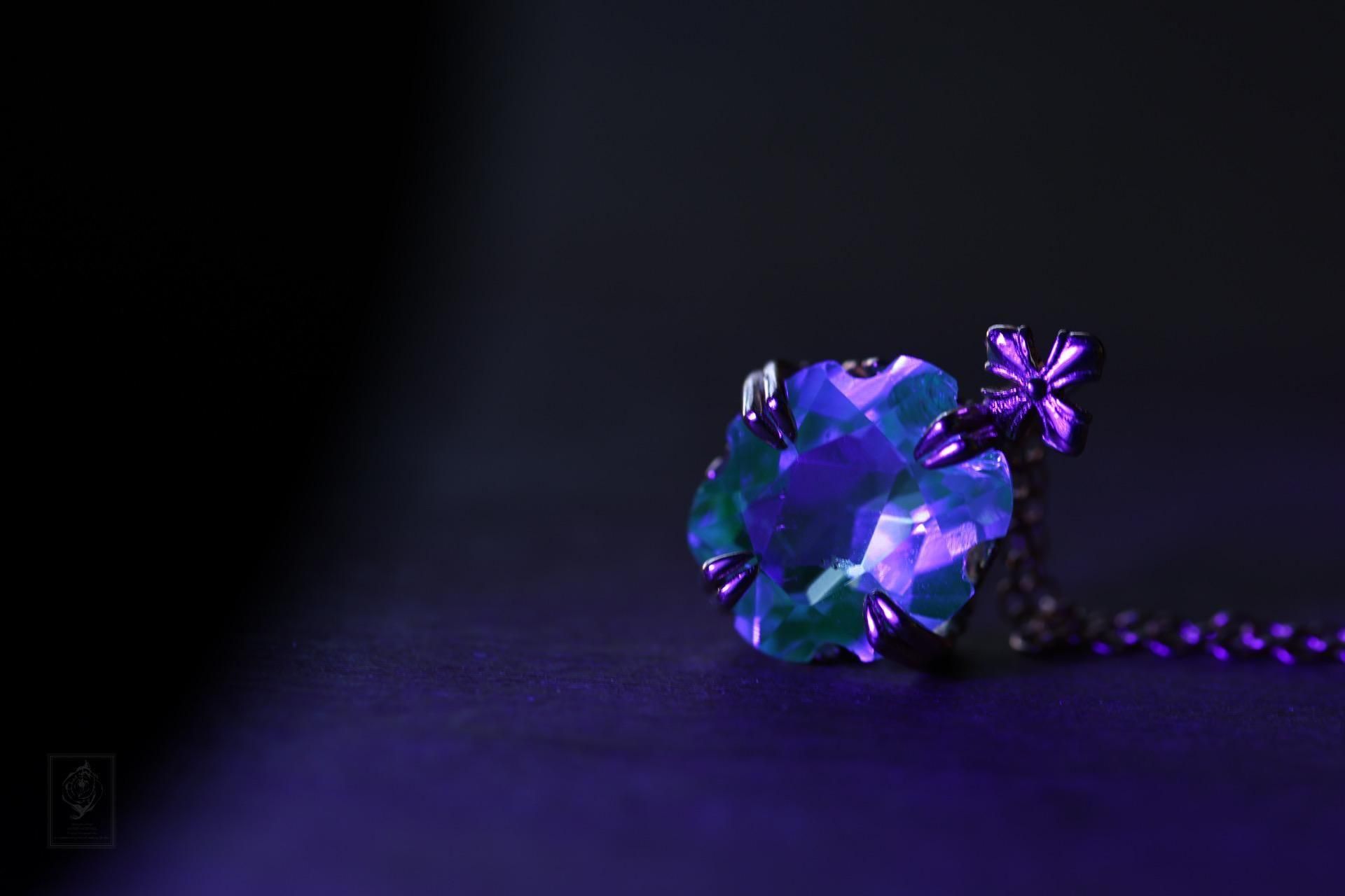 太陽光にも紫外線は含まれていますので、普通のガラスよりも鮮やかに輝く素材です。