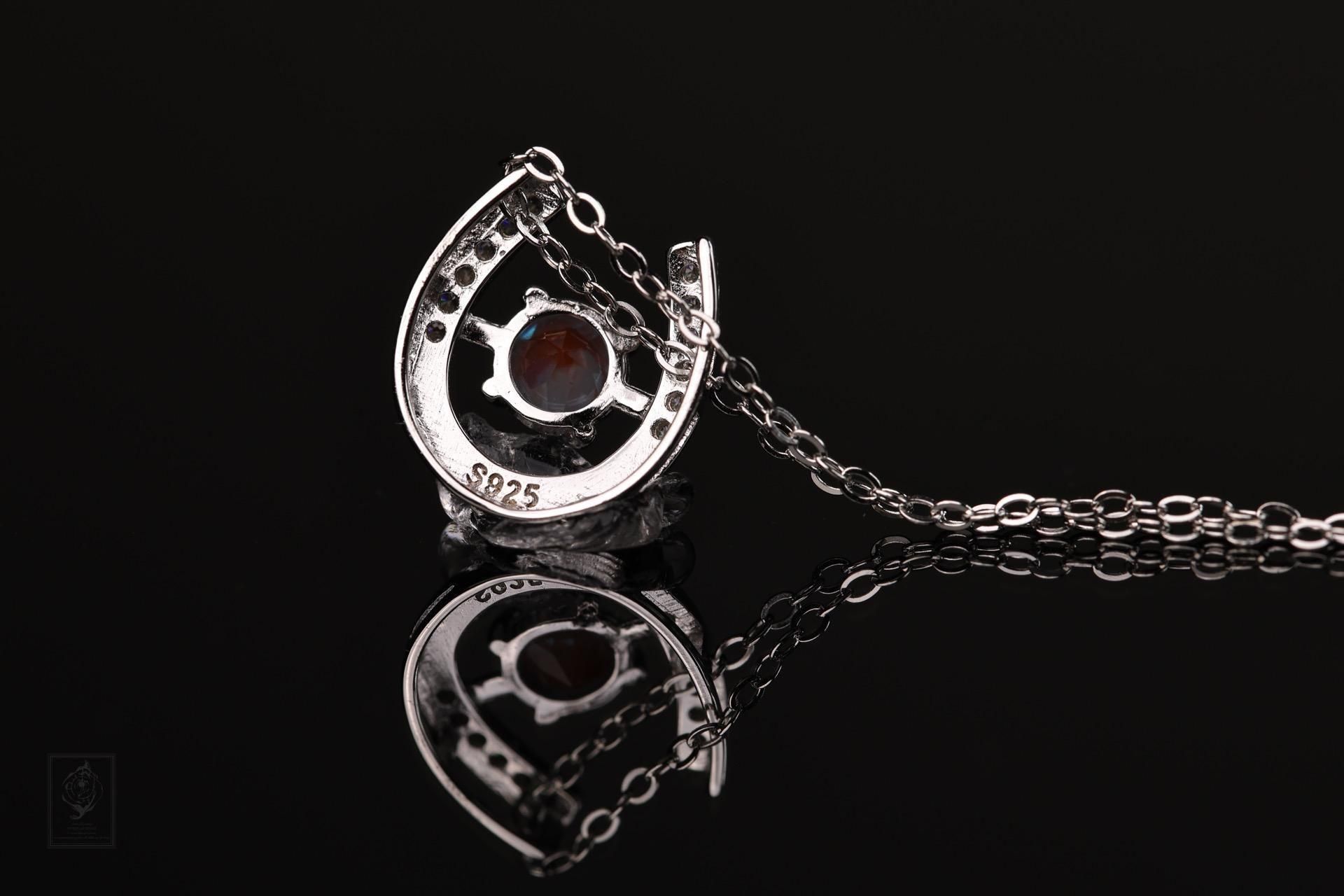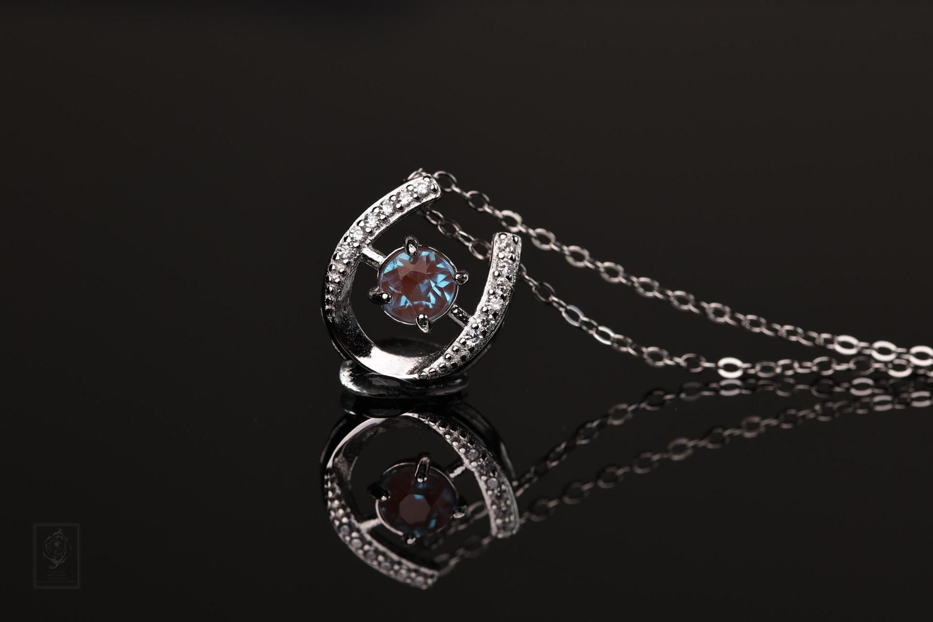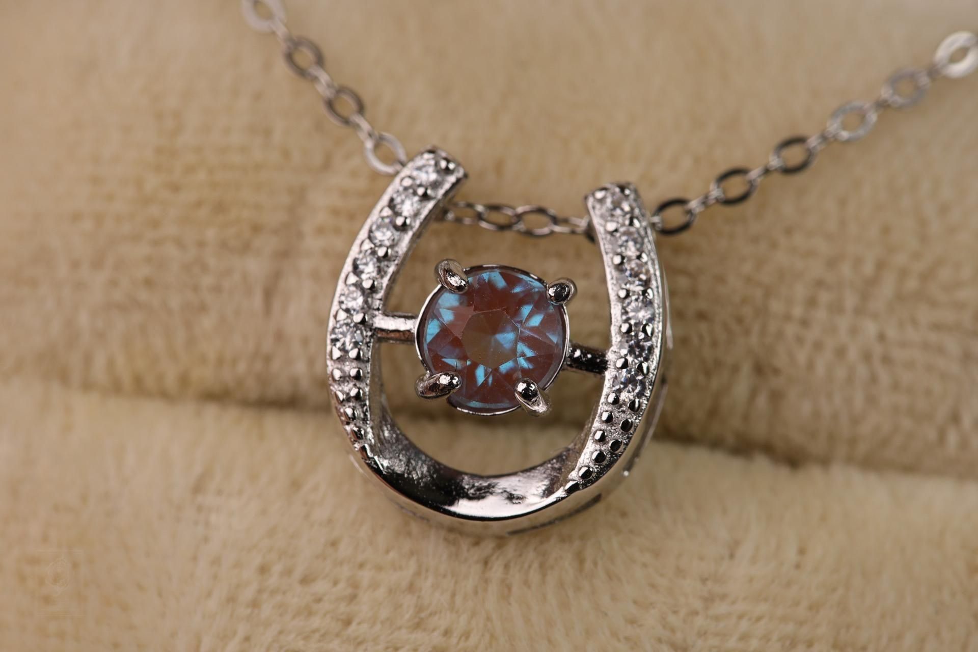 青とホースシューという珍しい組み合わせは、ぜひ大切な人につないでいきたい、そんなネックレスです。