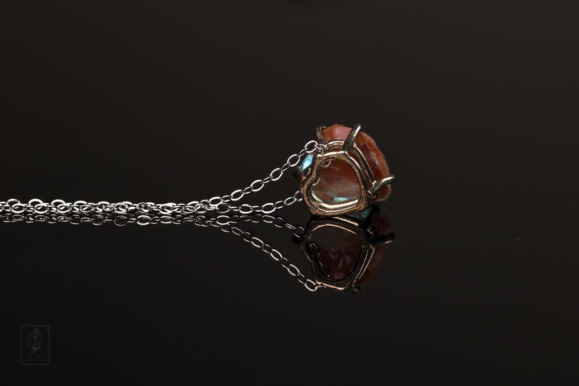 多方向から光を取り込む石座にセットすることで、少しの動きで光も動く躍動感を感じられるネックレスに。ただし輝きが強すぎない。そんなバランスが成り立っています。