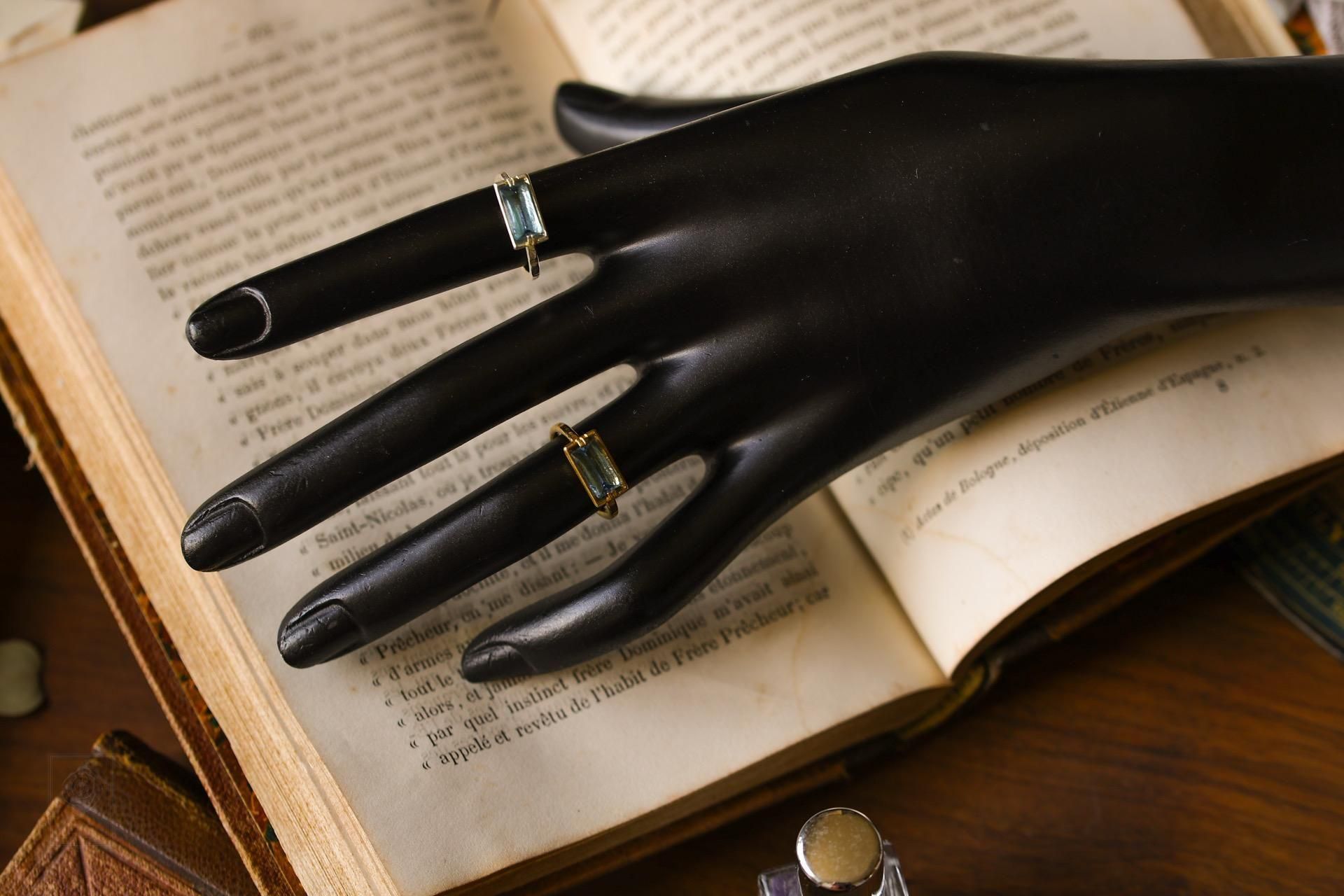 1950年代のヴィンテージウランガラスを使用した真鍮リング。