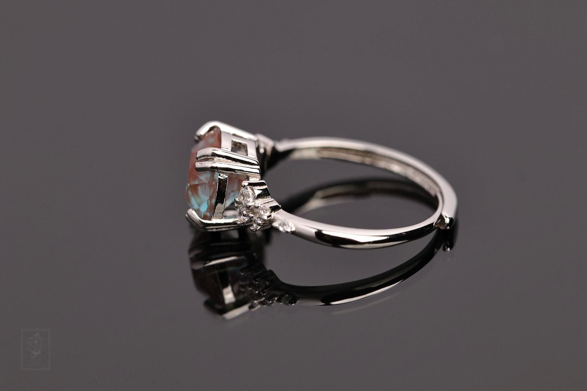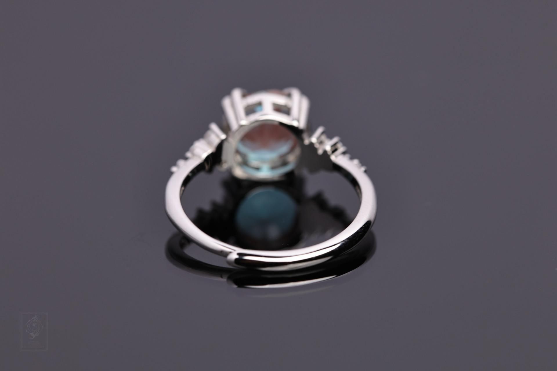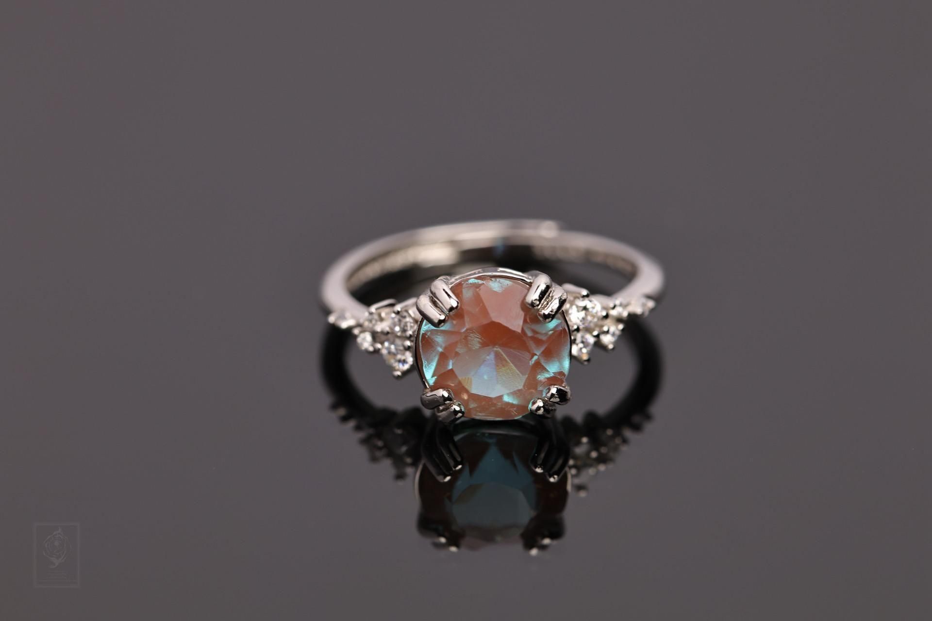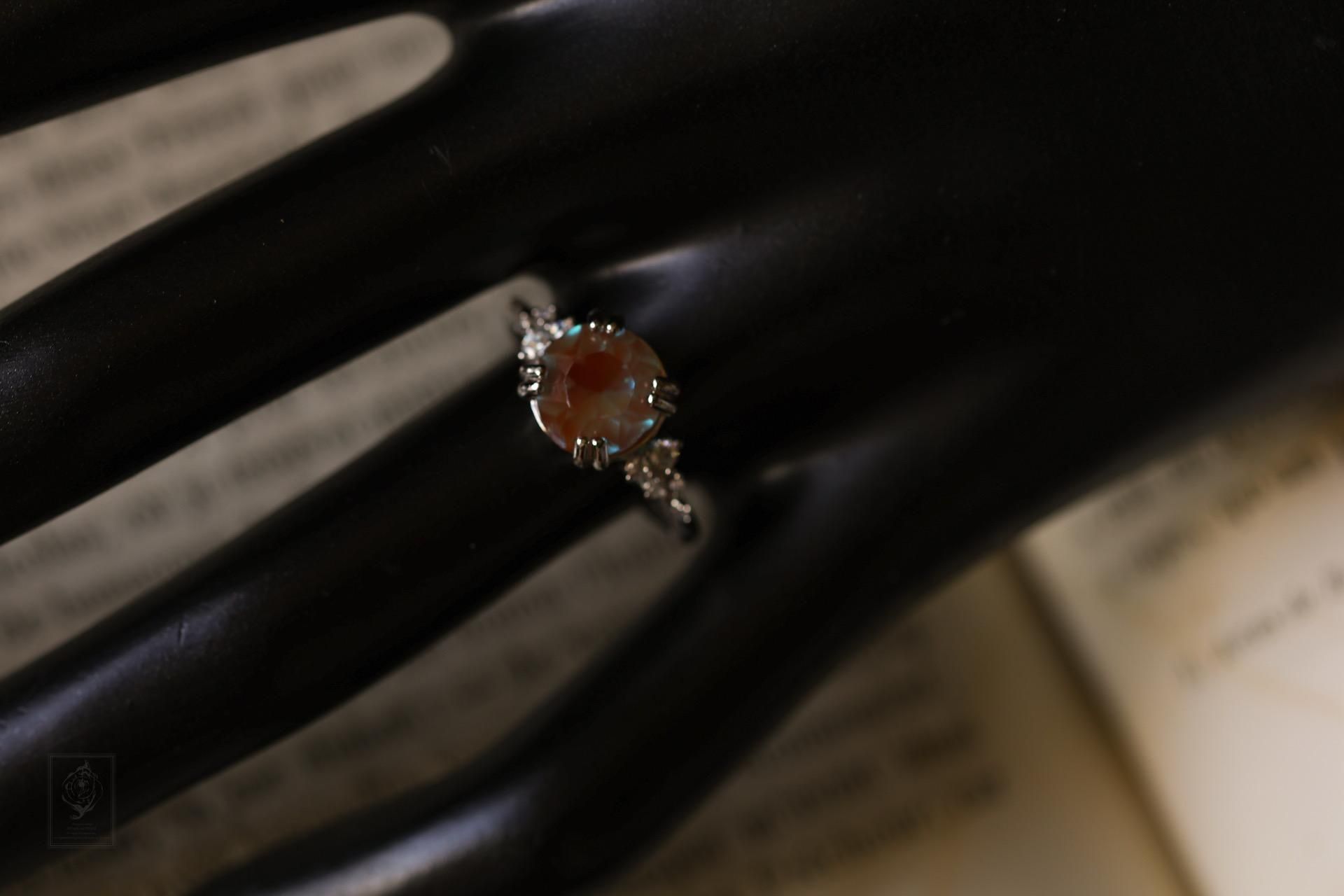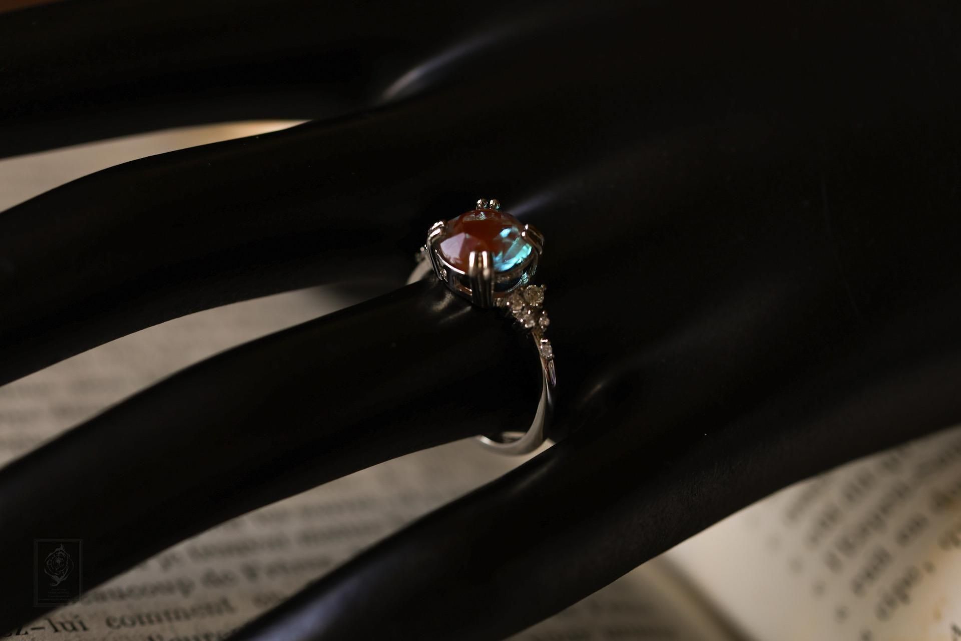淡いモーブブラウンから青の光が立ちのぼるような幻想的な輝きを見せます。