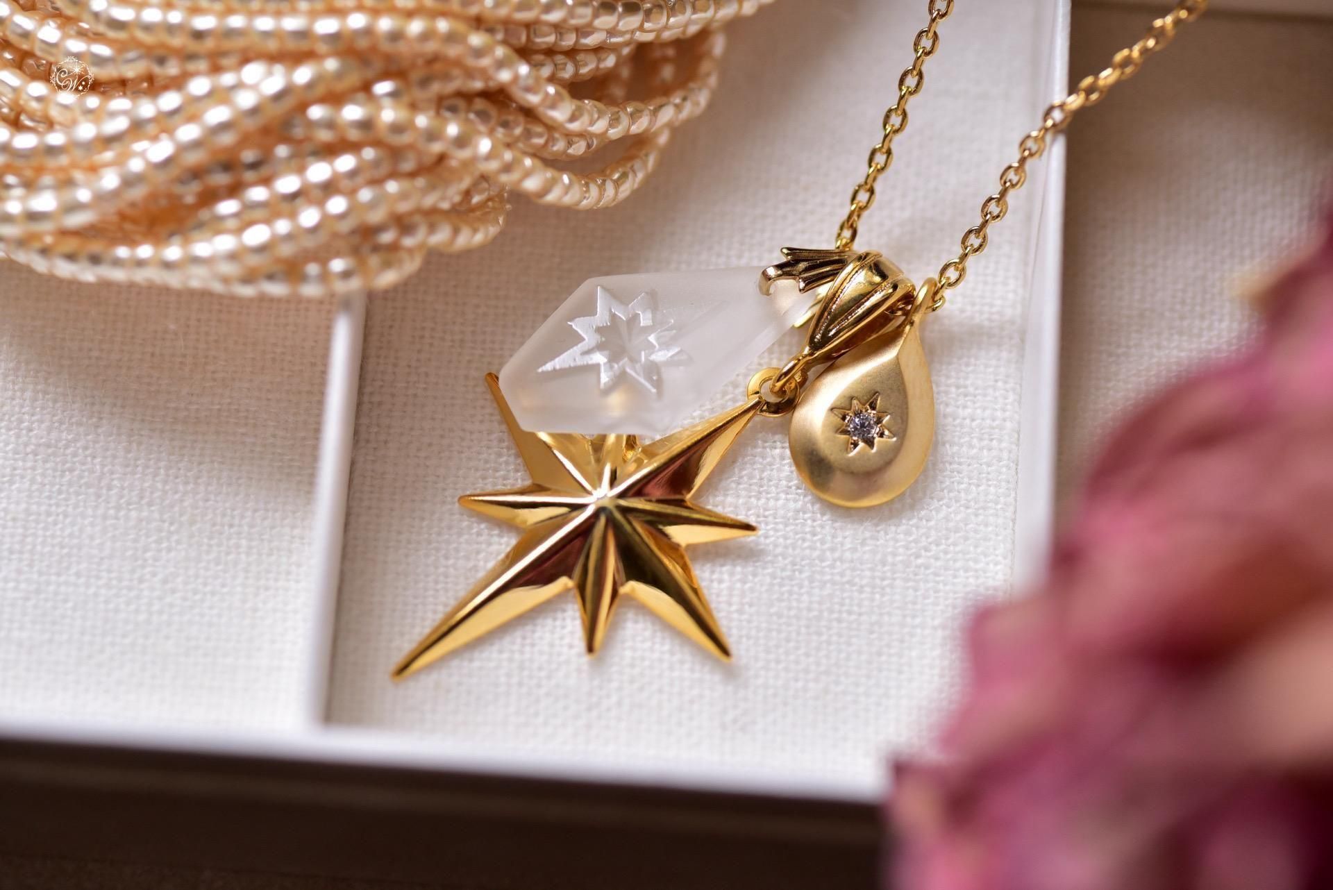 しずくモチーフにはキュービックジルコニアをあしらい、