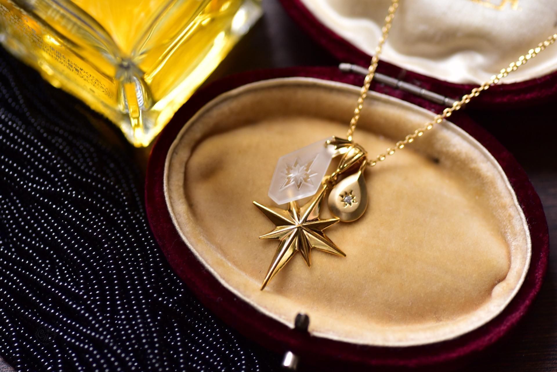 すりガラスのような質感をもつヴィンテージガラスチャームに、