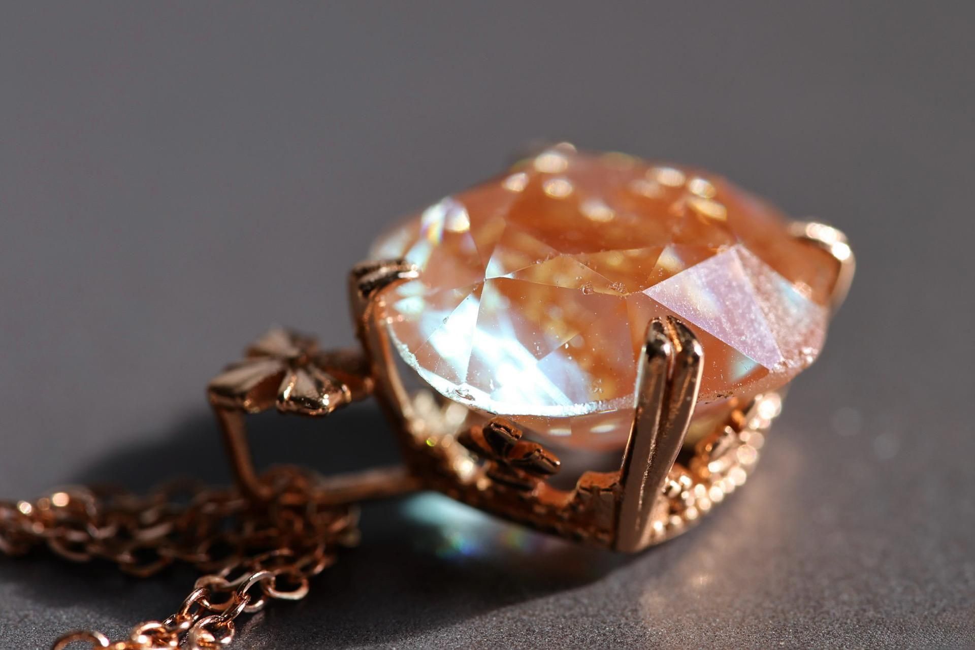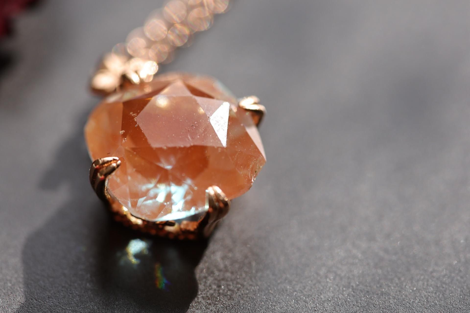 パビリオン面の細やかなカットが光を細かく返し、